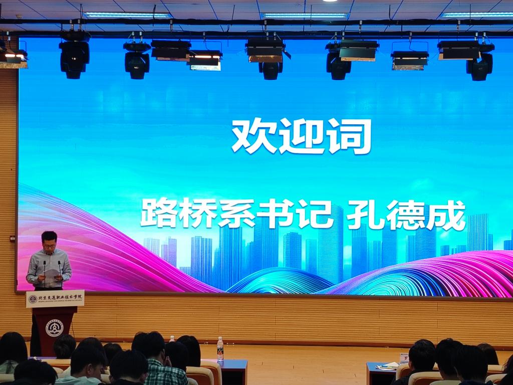 路橋系黨支部書記孔德成致辭,他強調,“弘德立行技青春"是新時代職業教育對大學生成長的深刻注解,是路橋系秉承"至藝立人"校訓精神,致力于培養具有扎實技能、創新精神和社會擔當的交通建設人才的具體實踐。此次活動的舉辦,既是一場職業技能的競技場,也是一次錘煉品德的必修課,更是一個展示青春的大舞臺。同時,孔書記也對同學們寄予厚望,希望同學們此次活動為契機,弘揚工匠精神,涵養職業品德,用技能點亮青春。