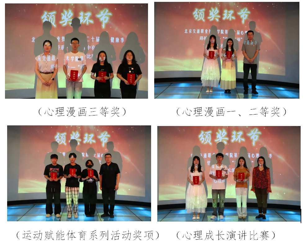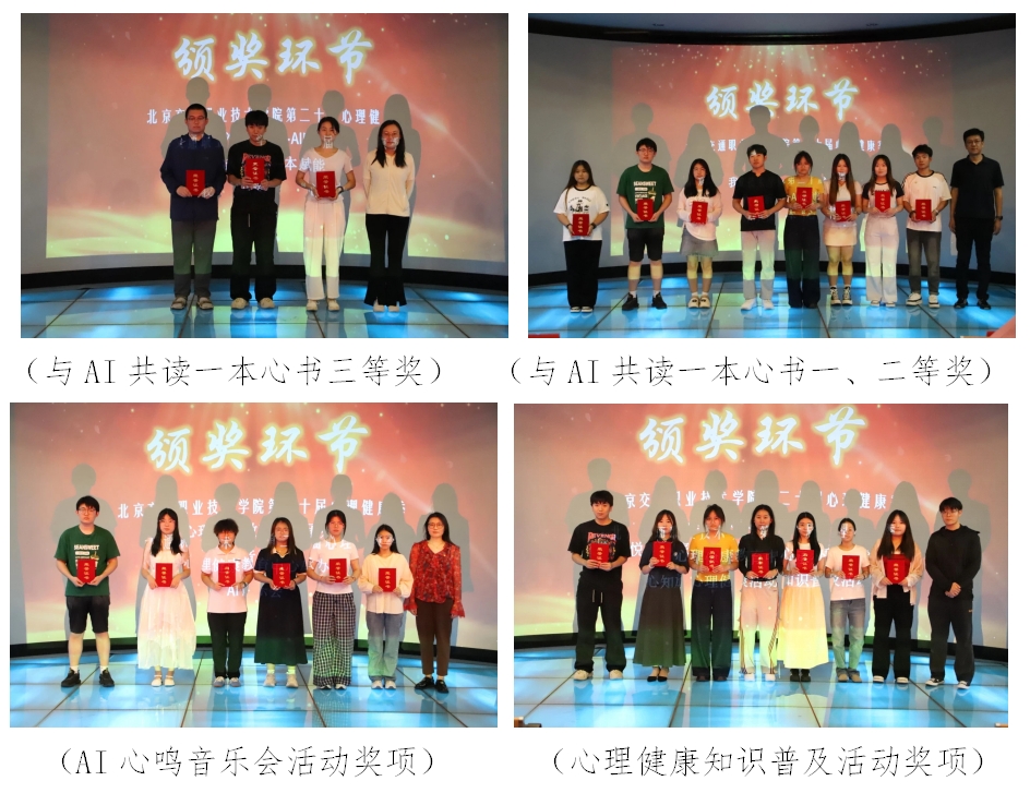 隨著一段回顧視頻的播放,我院第20屆“5?25”大學生心理健康節閉幕式暨頒獎典禮拉開帷幕。本屆以“美潤心靈 AI 育未來”為主題,心理健康教育中心聯動各系開展十余項活動,涵蓋趣味運動、知識普及、才藝展示等多元領域,同學們踴躍參與,更有多人斬獲北京市級獎項,盡顯青春采。