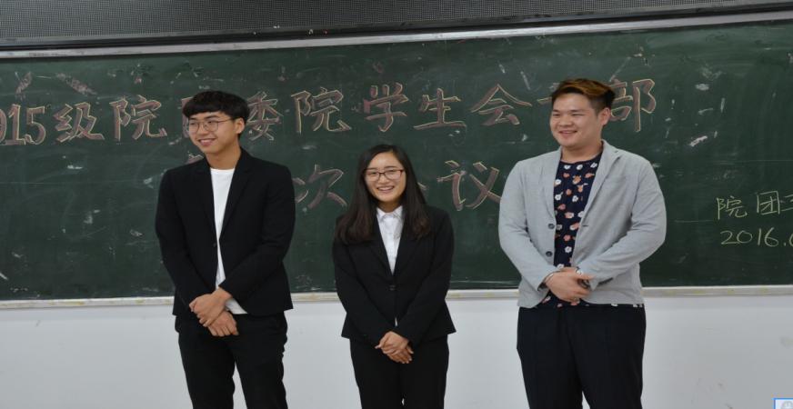 會議開始,由團委學(xué)生活動指導(dǎo)顏金海老師對團委2015-2016年第二學(xué)期內(nèi)各項工作進行了總結(jié),并表達對上學(xué)期工作的肯定。同時他也指出一些問題和不足,他強調(diào)學(xué)生會干部和干事之間要增強溝通和交流,干部和干事應(yīng)保持良好的學(xué)習(xí)生活關(guān)系,保持良好的工作熱情,個人也要注重班級團支部發(fā)展以及注重班級關(guān)系,為團支部和團總支多做貢獻,要加強內(nèi)部紀律整頓,強化在學(xué)院學(xué)生干部各部門責(zé)任意識,低調(diào)行事,禮貌待人,調(diào)整思想,也要積極參加到學(xué)院下達的各項活動中。隨后,由新任院團委社會實踐部、組織部、宣傳部、辦公室、院團委青年志愿者協(xié)會、院團委社團聯(lián)合會、院學(xué)生會廣播站、技術(shù)部、生活部、體育部、外聯(lián)部、文藝部、學(xué)習(xí)部、信息部,主席團2015級學(xué)生干部依次上臺自我進行介紹及對以后工作的期許。新任主席對于以上各部負責(zé)人講話進行總結(jié),并闡述了2016-2017學(xué)年第一學(xué)期的院學(xué)生干部工作重心和指導(dǎo)思想。