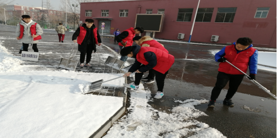 自昨晚降雪以來,積雪給校園交通和同學出行帶來了諸多不便。我院團委組織部發起了青年榜樣掃雪活動志愿服務活動,志愿者們領取工具后,立即有序地投入到掃雪工作中,分工明確,主要對主干道路教一樓和辦公樓前的積雪進行清理。寒冷的天氣絲毫不影響志愿者們的勞動熱情,大家齊心協力,克服諸多困難,用鐵鍬將積雪堅硬的部分一點點鏟清。在志愿者們的堅持下,一條便于行走的道路出現在同學們眼前,同學們紛紛向志愿者們投去了贊許的目光。