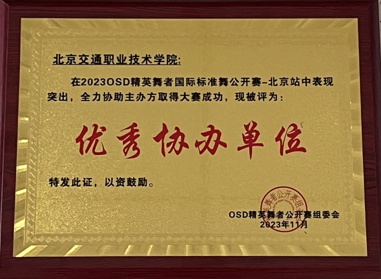 OSD精英舞者國際標準舞公開賽(北京站)的圓滿落幕,離不開我院志愿者們默默無聞的付出和無私的奉獻。他們以實際行動展現了“奉獻、友愛、互助、進步”的志愿精神。北京交通職業技術學院還榮獲“優秀協辦單位”的獎項。通過此次賽事服務,我院學子收獲了許多舞蹈知識和大型賽事舞臺表演活動經驗,豐富了人生閱歷,今后,學院將繼續做好各項賽事服務保障與青年志愿者服務工作,也將繼續在未來的志愿活動中熠熠生輝,為更多人帶去溫暖與幫助!