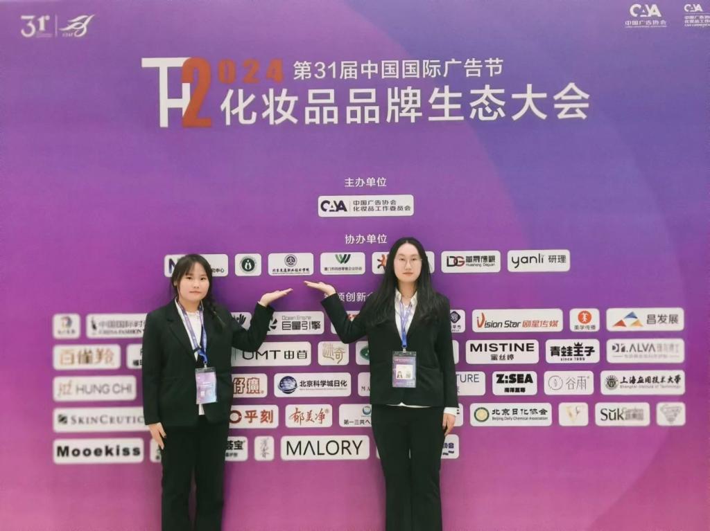 2024年11月29日,備受矚目的第二屆化妝品品牌生態大會在廈門國際會展中心成功舉辦,作為第31屆中國國際廣告節的核心活動之一,此次大會匯聚了行業內眾多精英與專家。作為協辦單位我院管理系主任陳曉燕及教師高潤應邀出席,同時,23級化妝品經營與管理專業的王正炎、楊淑宇兩位同學作為志愿者,助力大會的順利舉辦。