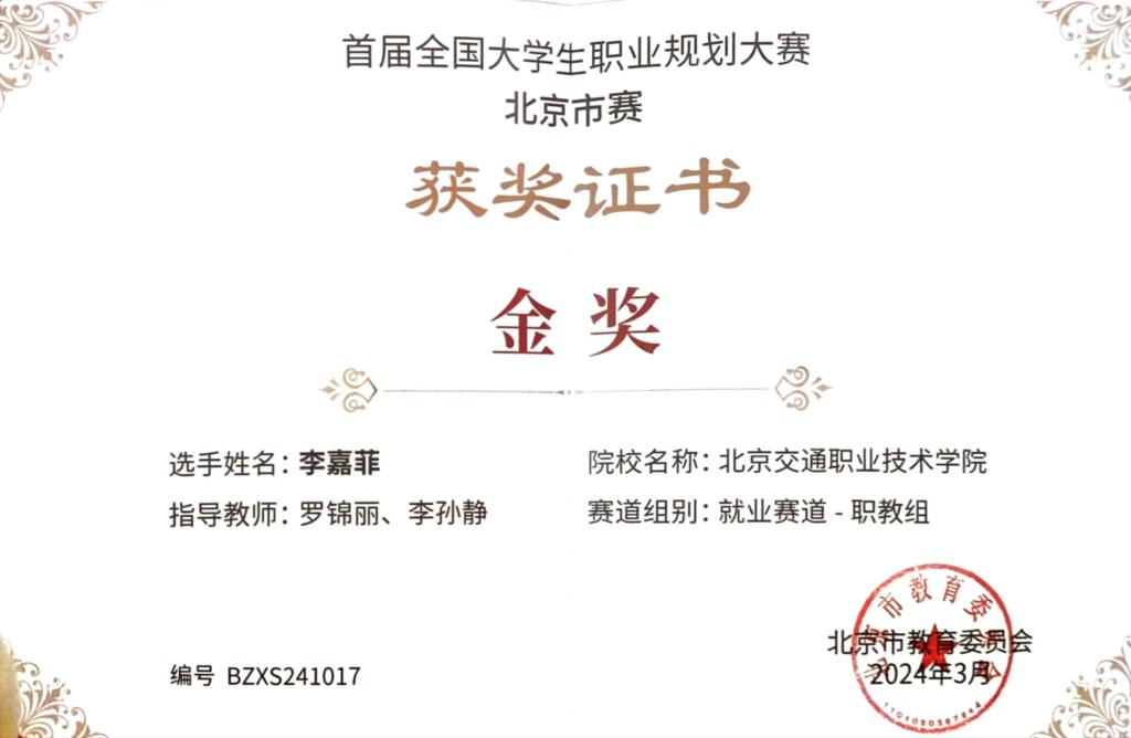 3月9日,首屆全國大學生職業規劃大賽北京市賽總決賽落下帷幕。我院汽車系21級計算機應用技術專業李嘉菲榮獲就業賽道-職教組金獎!